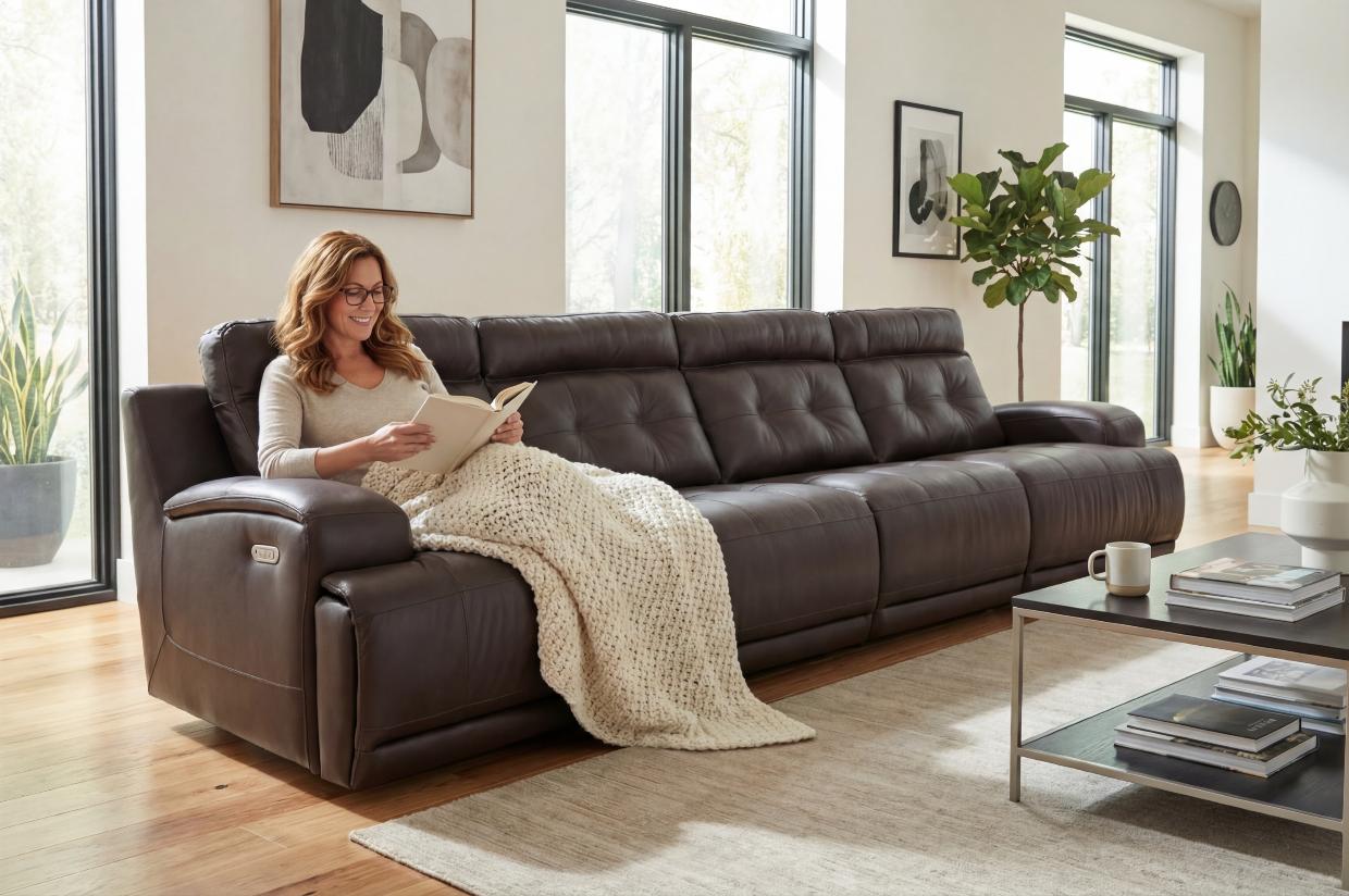 Sofá U108 Reclinável Elétrico com 4 Lugares - Couro Legítimo - Idea Relax by Natuzzi Group